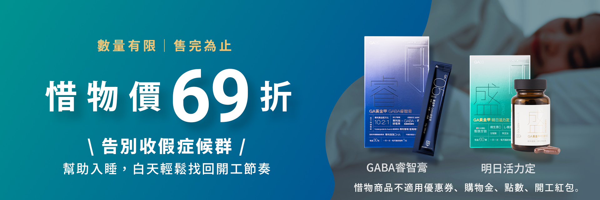 GA黃金甲明日活力定添加甘胺酸和日本專利豚胎盤精華,好眠助活化。